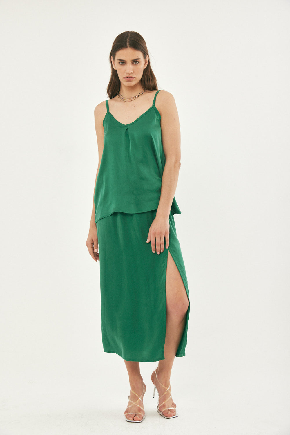 .גופיית משי קלילה ונעימה בגוון נועז ואופנתי בגיזרה בייסיק קלילה ונעימה